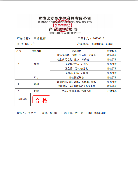 120101002 湘玻 三角量杯 500ml(玻璃) 1個(gè)盒 20230310