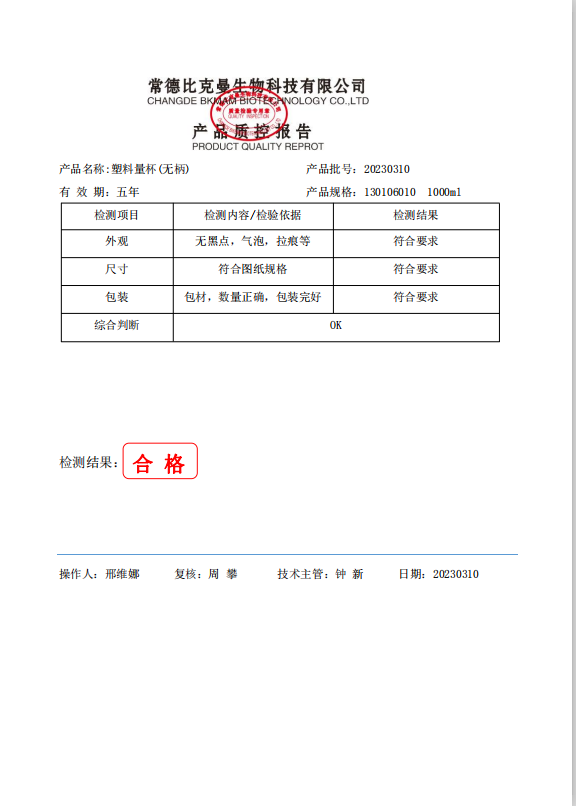 130106010 BKMAM 塑料量杯(無柄) 1000ml 20230310
