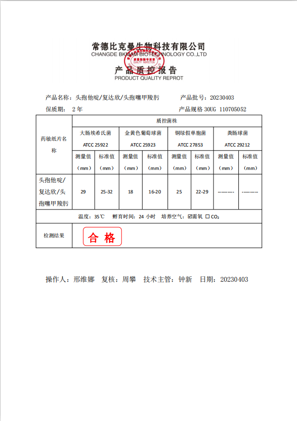 110705052 比克曼生物 頭孢他啶 30UG 20片瓶 20230403