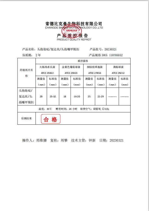 110705052 比克曼生物 頭孢他啶 30UG 20片瓶 20230321