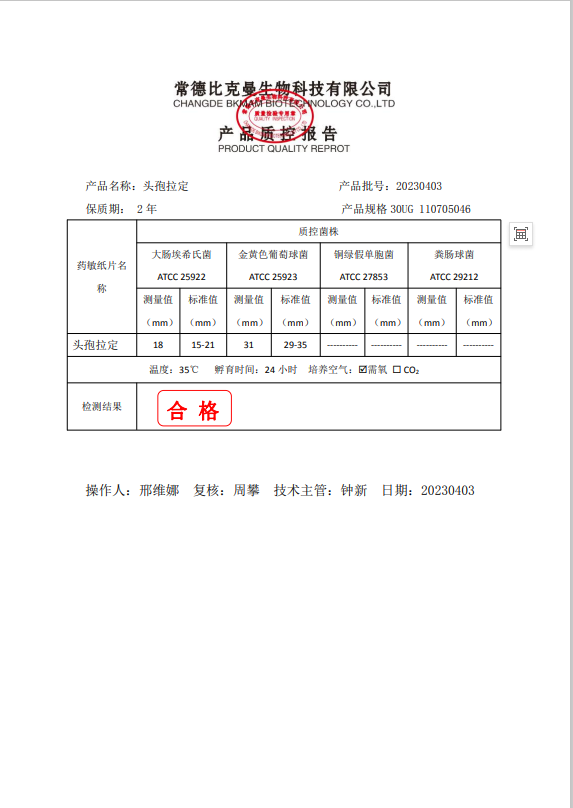 110705046 比克曼生物 頭孢拉定 30UG 20片瓶 20230403