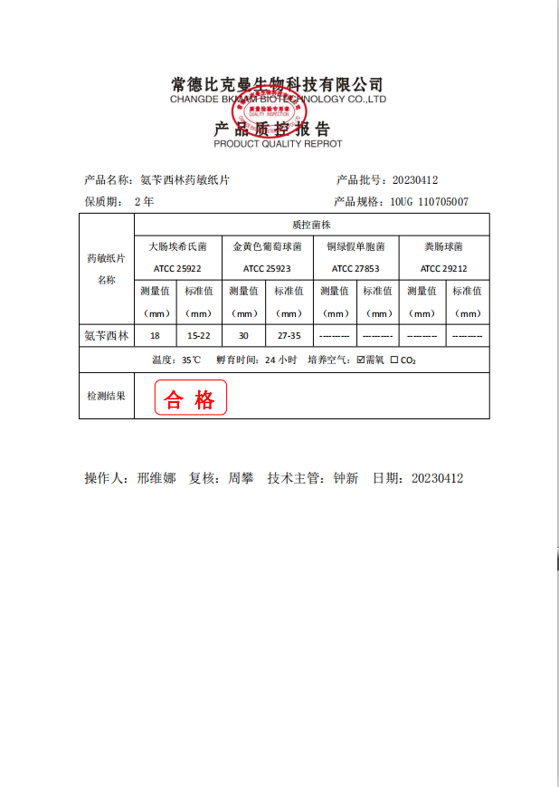 110705007 比克曼生物 氨芐西林 10UG 20片瓶 20230412