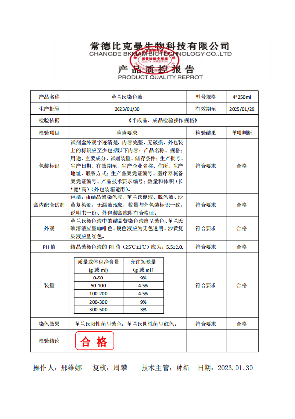 110703004 比克曼生物 革蘭氏染色液 250ml4支裝 20230130