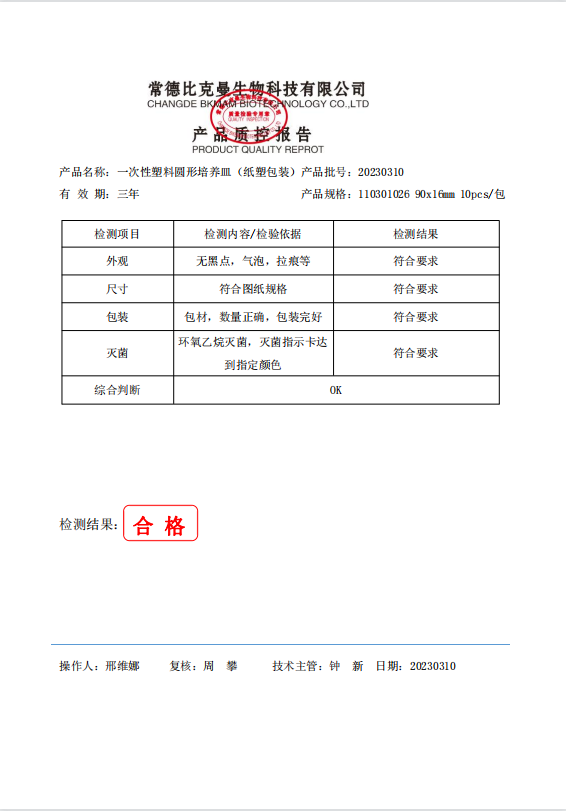 110301026 比克曼生物 一次性塑料圓形培養(yǎng)皿 (紙塑包裝) 90x16mm 10個(gè)袋 20230310
