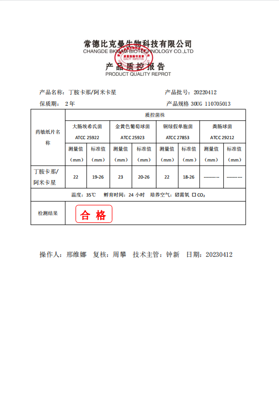 110705013 比克曼生物 阿米卡星 30UG 20片瓶 20230412