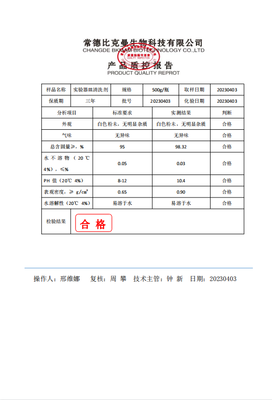 110702045 比克曼生物 實(shí)驗(yàn)器皿清洗劑 500g瓶 20230403