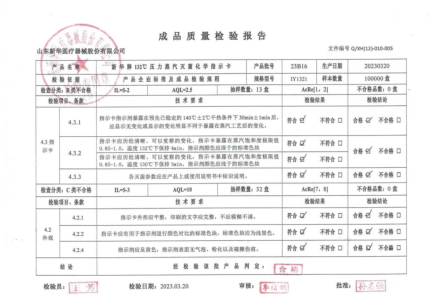 新華牌 121℃壓力蒸汽滅菌化學(xué)指示卡 I型 批號(hào)23B03 生產(chǎn)日期20230301