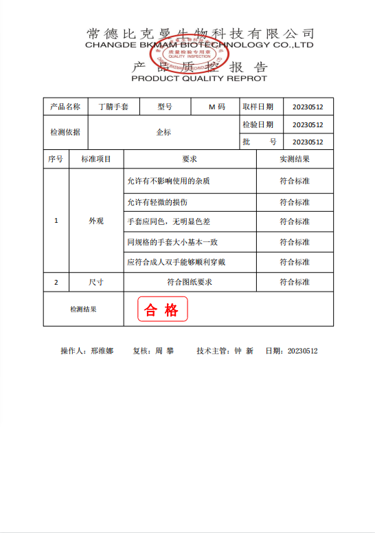 110601013 比克曼生物 丁腈手套 M碼 50雙盒 20230512 質(zhì)檢報(bào)告