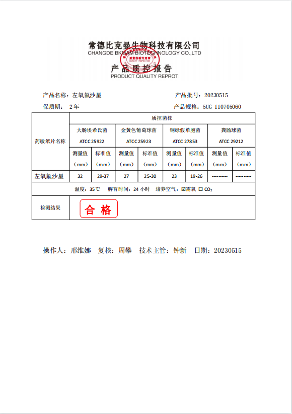 110705060 比克曼生物 左氧氟沙星 5UG 20片瓶 20230515