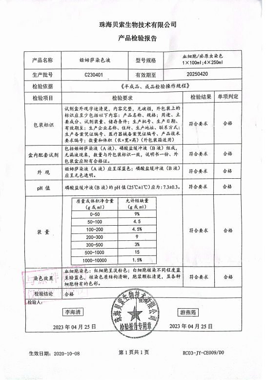 貝索 姬姆薩染色液 血細(xì)胞 瘧原蟲染色 1x100ml; 4x250ml C230401