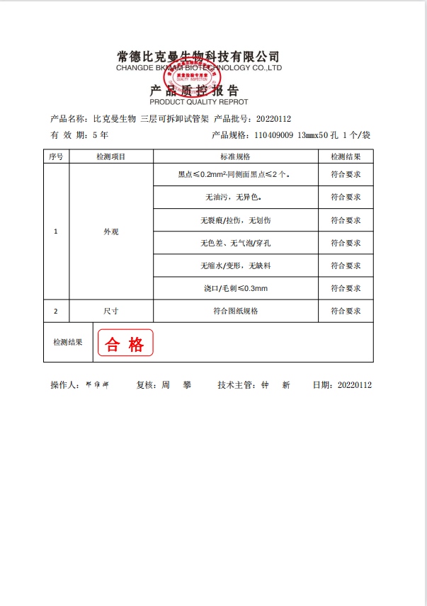 比克曼生物 三層可拆卸試管架 13mmx50孔 110409009 20220112