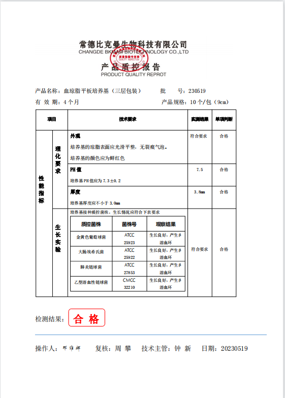 110704011 比克曼生物 血瓊脂平板培養(yǎng)基 (三層包裝)9cm 10個袋 230519
