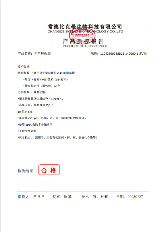110429002 bkmamlab 干型透析袋 MD25-14000D 1米卷 批號 202302