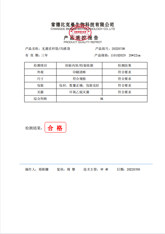 110102029 比克曼生物 立式無菌采樣袋 20x22(有印刷無LOGO帶壓條) 100個裝 20220708
