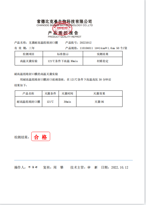 110104011 比克曼生物 無菌耐高溫封口膜 14x14cm (透氣膜1.6cm) 50個袋 20221012