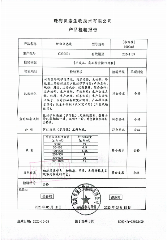 貝索 伊紅染色液(水溶性)1000ml BA4024 C230501