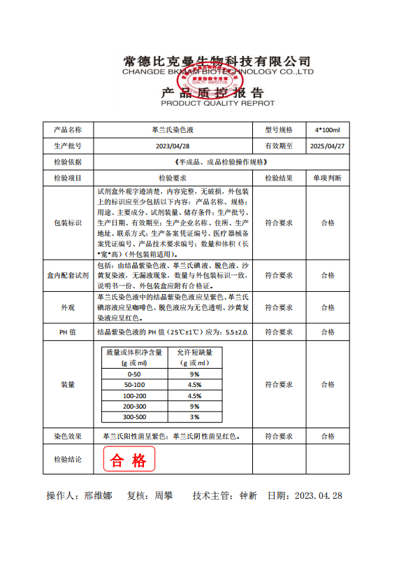 110703002 比克曼生物 革蘭氏染色液 100ml4支裝 20230428