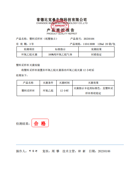 110413008 比克曼生物 采樣杯 (紙塑獨(dú)立) 120ml 1個(gè)袋 20袋包 20230106