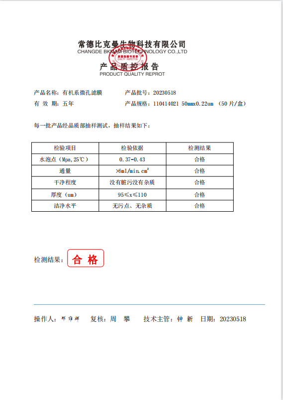 110414021 bkmamlab 有機(jī)系微孔濾膜 50x0.22um 50片盒 20230518