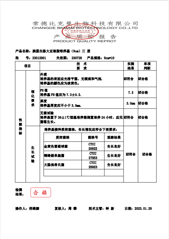 110704032 比克曼生物 胰蛋白胨大豆瓊脂(三層包裝) TSA瓊脂平板 9cm 10個(gè)袋 23012901