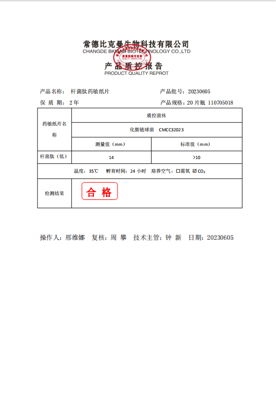 110705018 比克曼生物 桿菌肽 0.04ug 20片瓶 20230605