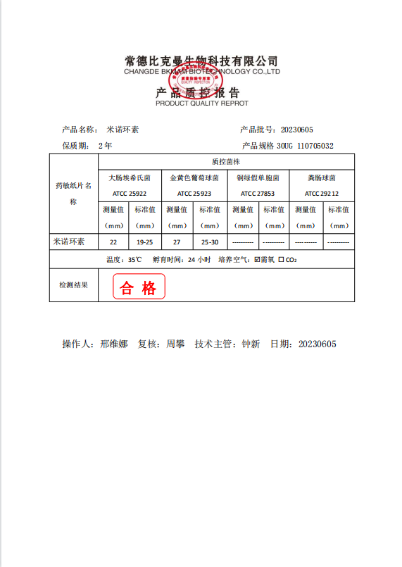 110705032 比克曼生物 米諾環(huán)素 30UG 20片瓶 20230605