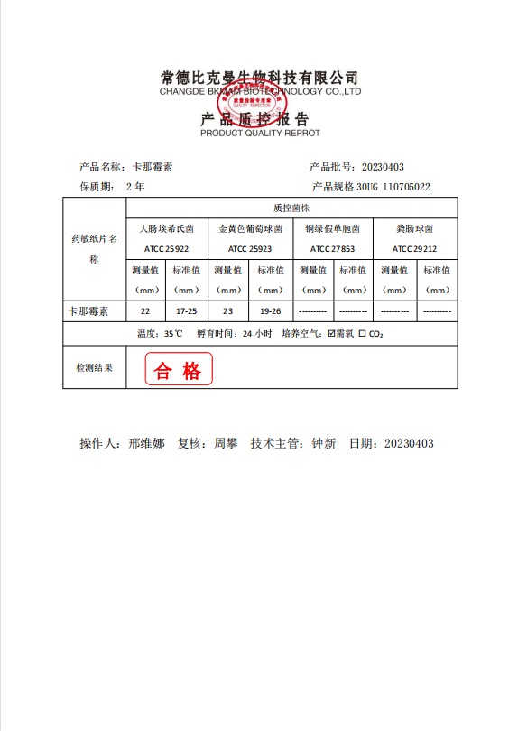 110705022 比克曼生物 卡那霉素 30UG 20片瓶 20230403