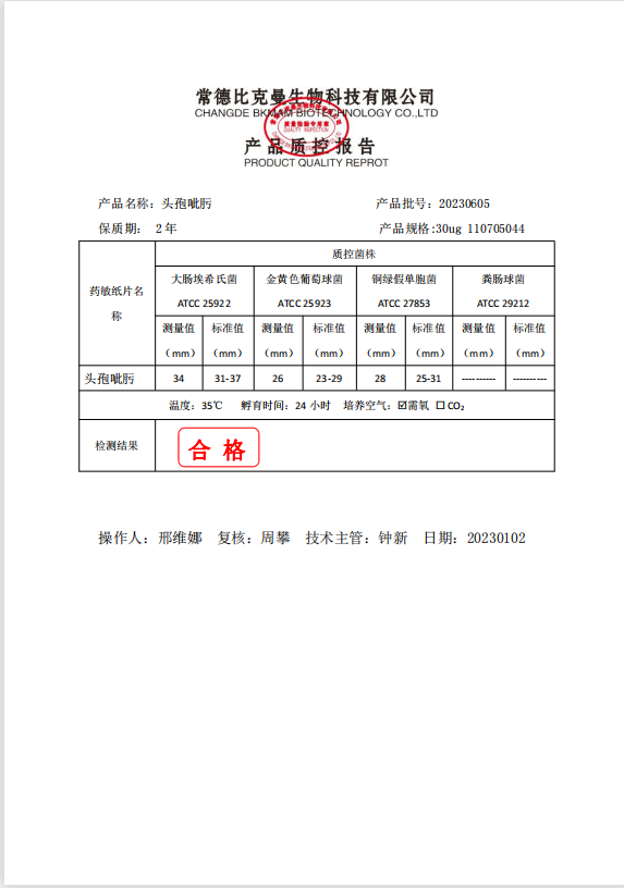 110705044 比克曼生物 頭孢呲肟 30ug 20片瓶 20230605