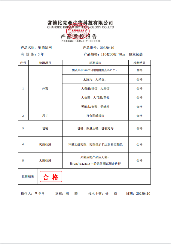 110426002 bkmamlab 細胞濾網(wǎng) 70um 1個袋 20230410