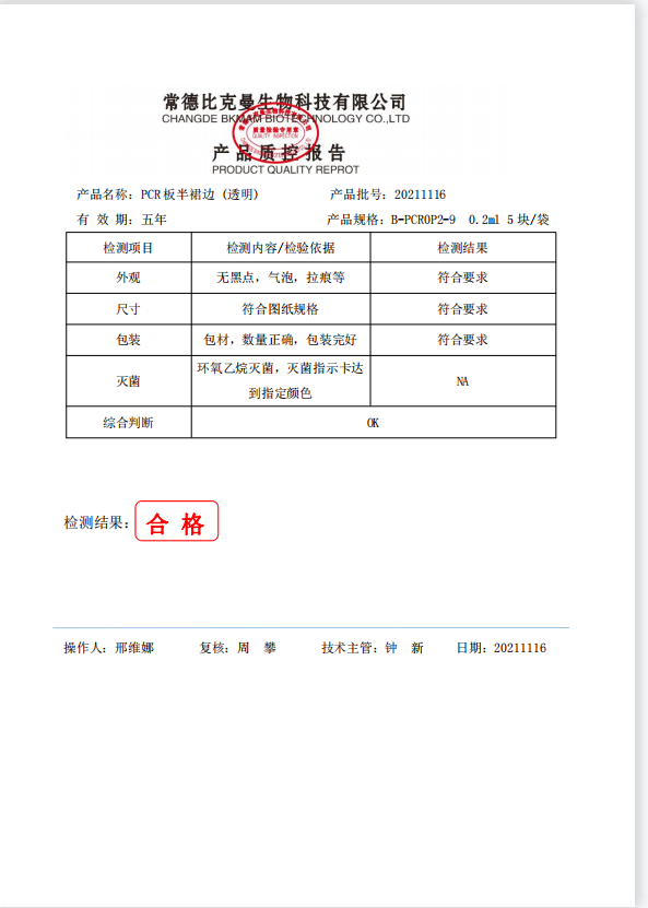 PCR板 0.2ml PCR板半裙邊 (透明) 5塊袋 B-PCR0P2-9 20211116