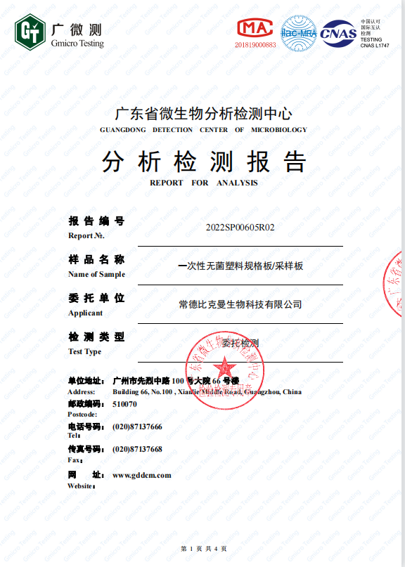 第三方報告 2022SP00605R02-一次性無菌塑料規(guī)格板&采樣板 20220110