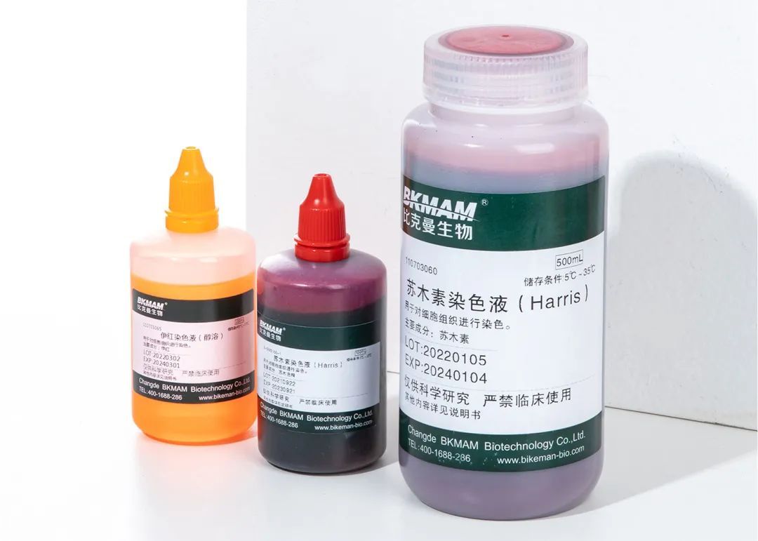 取玻片浸泡于蘇木素染色液中,一般動物組織染30s,植物組織染3-5min,蒸餾水水洗,1%鹽酸酒精中脫色,浸泡水洗。