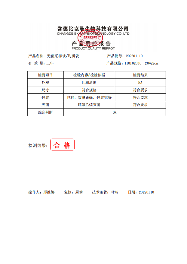 立式無菌采樣袋 20x22(無印刷帶壓條) 100個裝 110102030 20220110