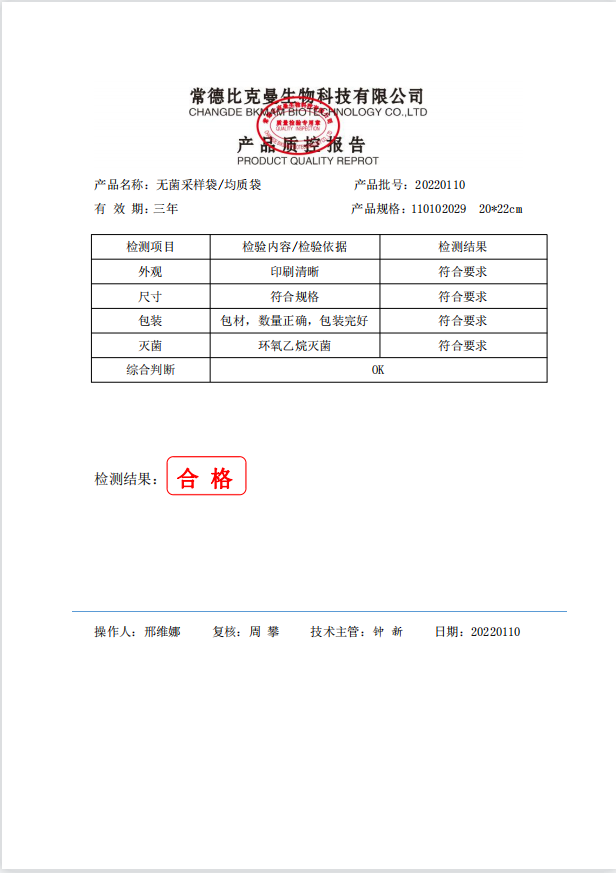 立式無菌采樣袋 20x22(有印刷無LOGO帶壓條) 100個裝 110102029 20220110