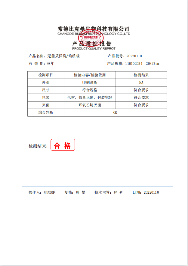立式無菌采樣袋 20x27(無印刷帶壓條) 100個裝 110102024 20220110