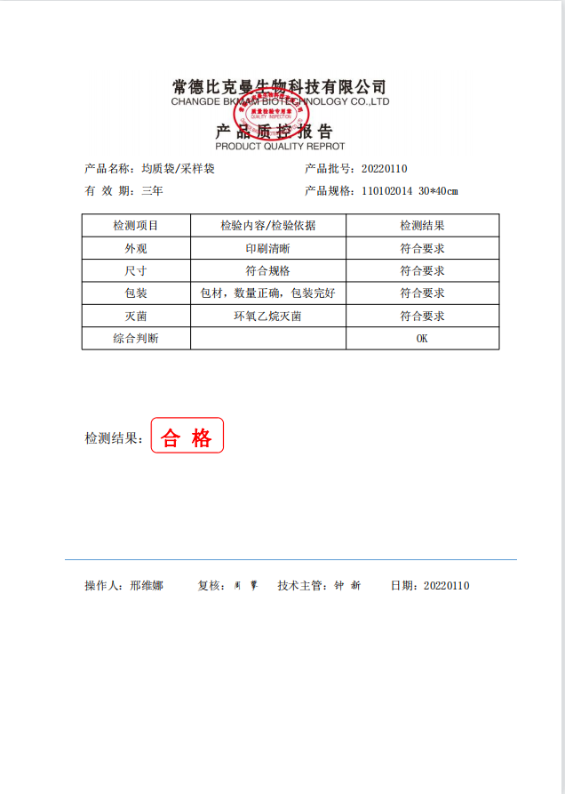 立式無菌采樣袋 30x40 (有印刷無LOGO帶壓條) 50個裝 110102014 20220110