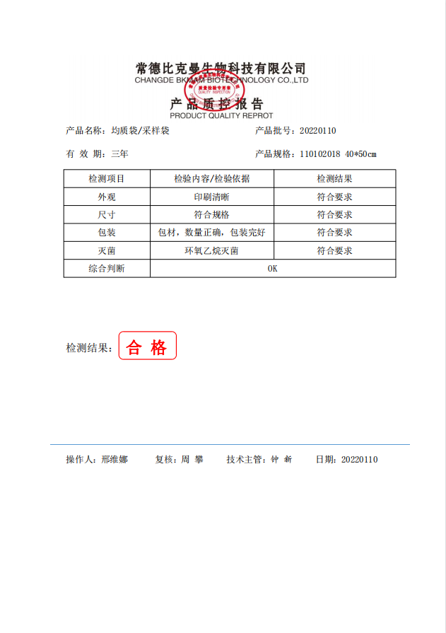 無菌采樣袋 40x50 (有印刷無LOGO帶壓條) 50個裝 110102018 20220110