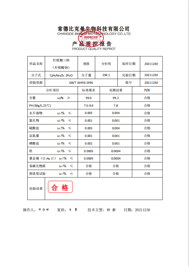 比克曼生物 檸檬酸三鈉 (檸檬酸鈉)AR 分析純 500g瓶 110702038 20211230