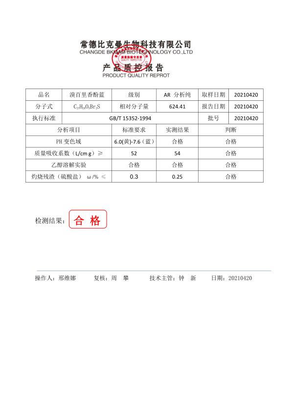 比克曼生物 溴百里香酚藍(lán) AR分析純 10g 110702058 20211020