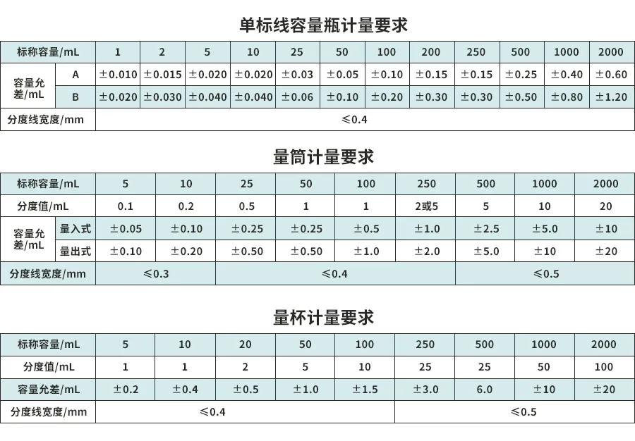 在開始使用之前,先來(lái)了解,什么是量器 測(cè)定計(jì)算容積的器皿稱為量,量器是能夠相對(duì)準(zhǔn)確地量取所需要的量的。其中量器又分量入式與量出式。 量入式是指量入的體積準(zhǔn)確,是將待量取的樣本稱入量器內(nèi),進(jìn)行計(jì)數(shù)量取的,常用IN作為標(biāo)識(shí),如量筒、容量瓶等。 量出式是通過(guò)液體向量器外轉(zhuǎn)移來(lái)測(cè)定體積,常用EX作為標(biāo)識(shí),如移液管、滴定管等。 量器現(xiàn)在常用的質(zhì)量檢驗(yàn)標(biāo)準(zhǔn)是JJG 196-2006,劃分了A級(jí)、B級(jí)及對(duì)應(yīng)等級(jí)所需要達(dá)到的標(biāo)準(zhǔn)。