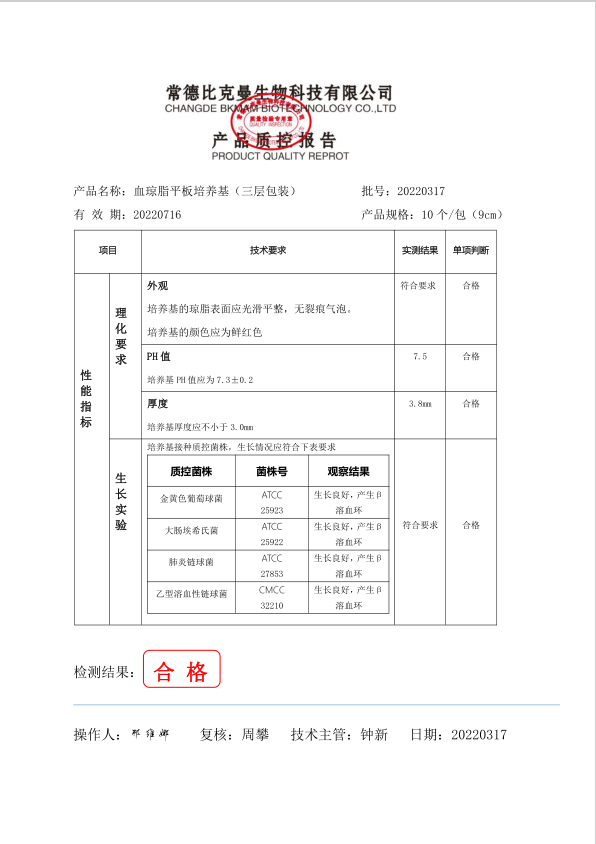 比克曼生物 血瓊脂平板培養(yǎng)基 (三層包裝)9cm 10個袋 110704011 20220317