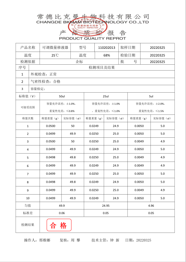 比克曼生物 微量移液器可調(diào)移液槍 5-50ul(八道) 1把盒 110202013 20220325