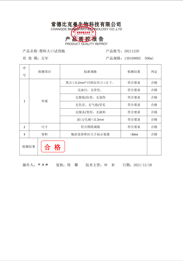 BKMAM 塑料大口試劑瓶 500ml 130109002 20211220