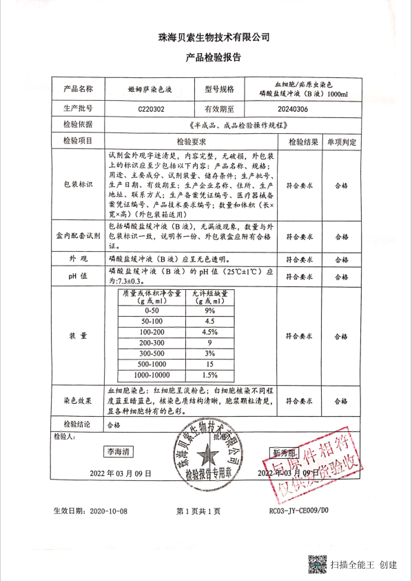 貝索 姬姆薩染色液 血細(xì)胞 瘧原蟲染色 磷酸鹽緩沖液(B液) 1000ml C220302