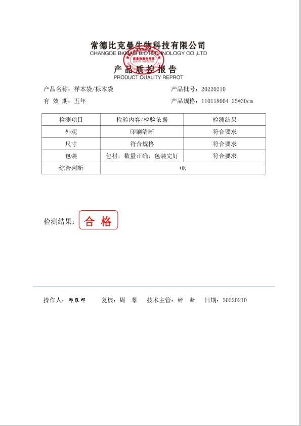 比克曼生物 樣本袋 25x30cm 100個(gè) 袋 110118004 20220210