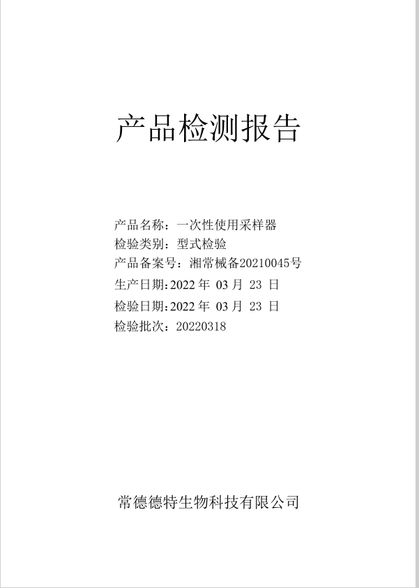 德特 一次性使用采樣器12ml(C-03滅活型)質(zhì)檢報(bào)告-生產(chǎn)批號(hào)20220318