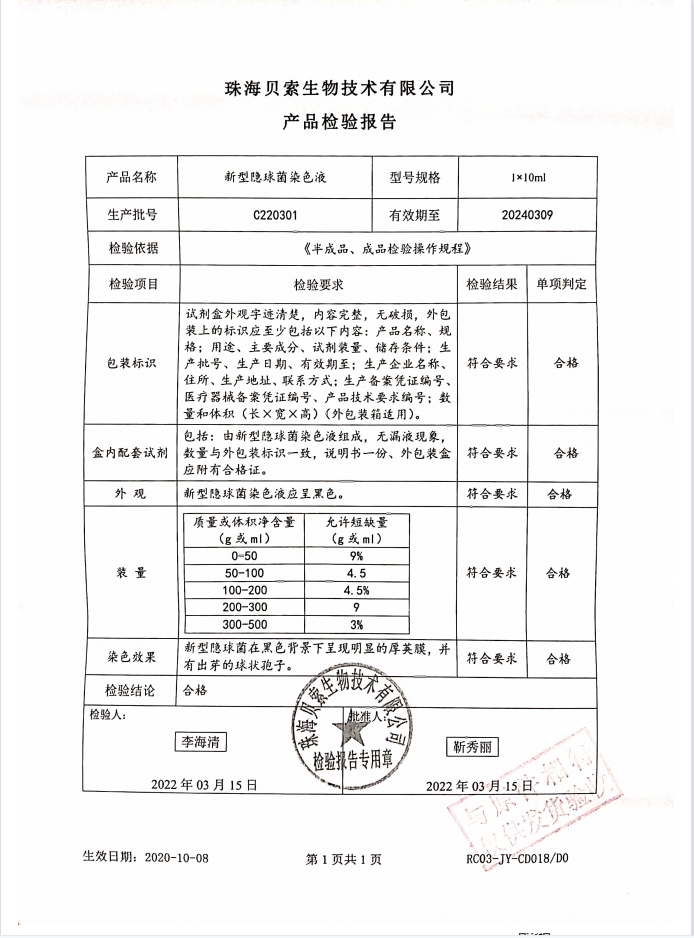 貝索 新型隱球菌染色液 1x10ml BA4042 C220301