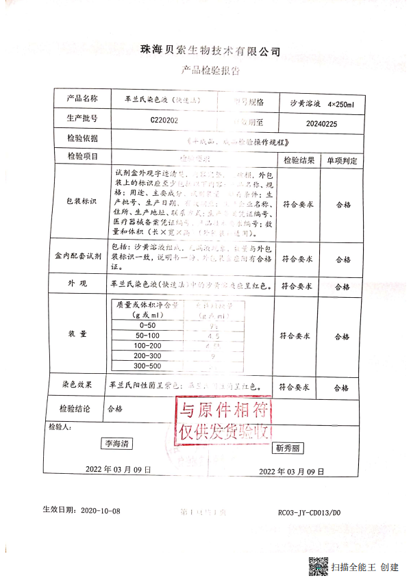 貝索 革蘭氏染色液(快速法) 沙黃溶液 4x250ml BA-4016D C220202