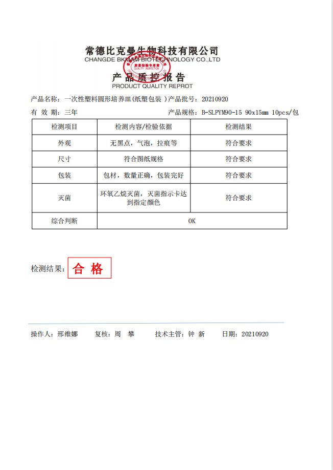 一次性圓形塑料培養(yǎng)皿 (紙塑包裝) 90x15mm 10個袋 B-SLPYM90-15 20210920