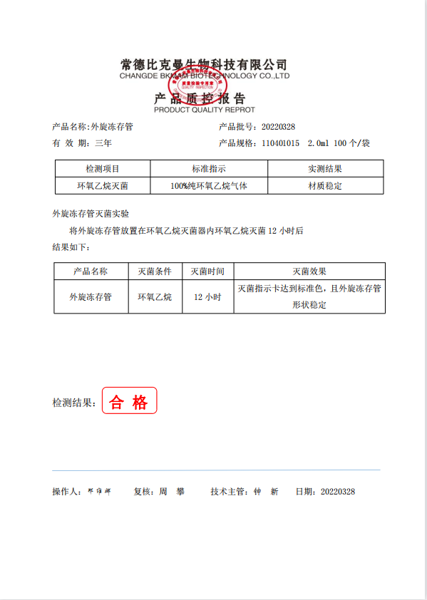 外旋冷凍管 (凍存管) 2.0ml 100個(gè)袋 110401015 20220328 滅菌報(bào)告